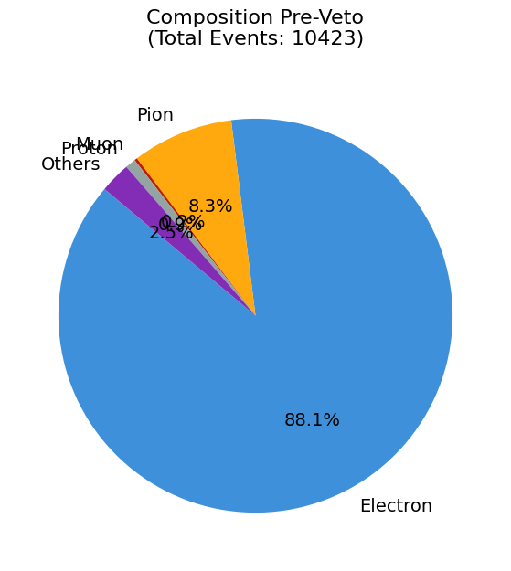Beam Composition Summary before and after hole veto
